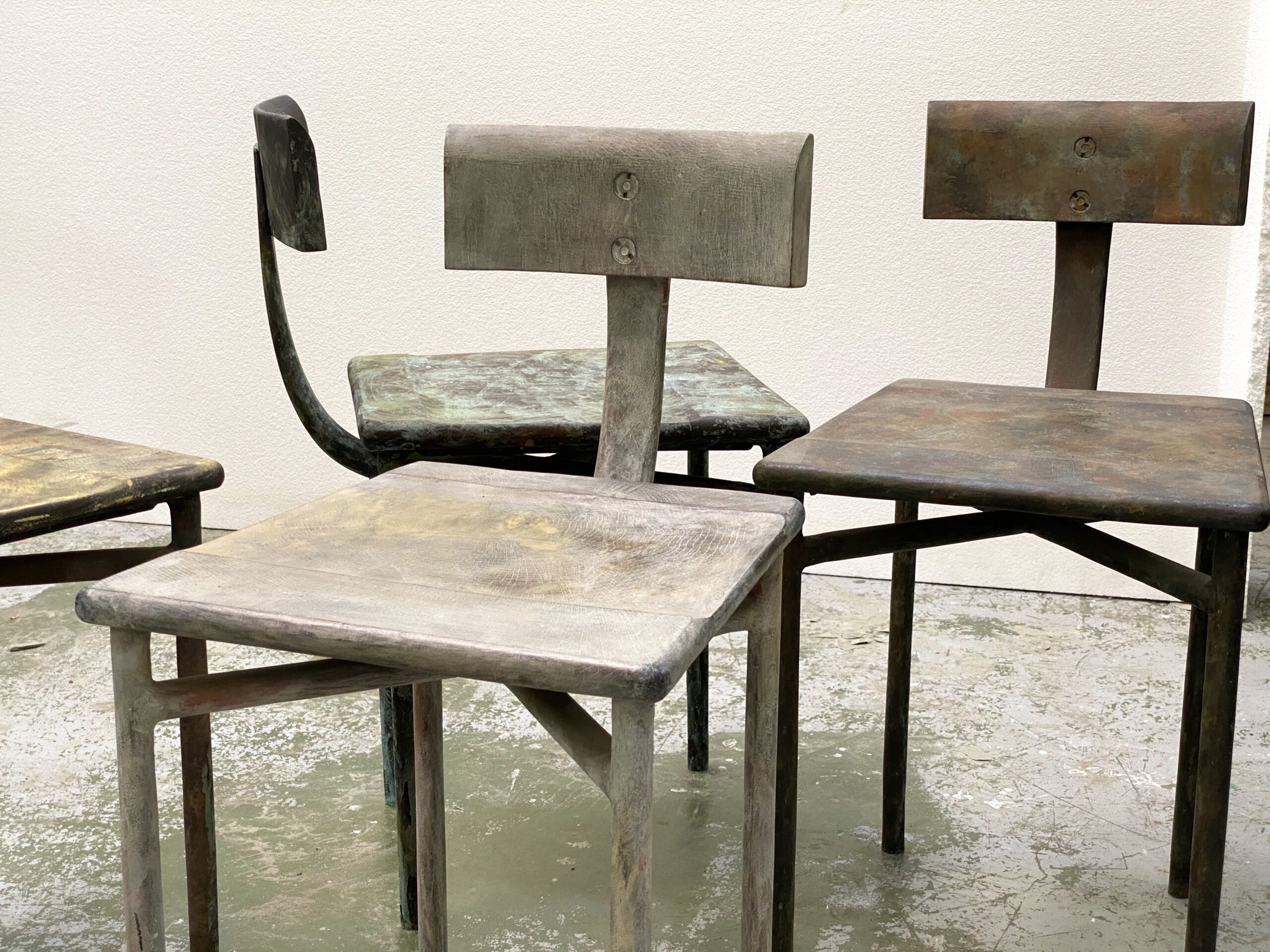 Die bronzenen Möbelobjekte sind als Teil der Installation als Verweise auf kulturelle und handwerkliche Fähigkeiten des Menschen zu verstehen. Und bestuhlen – oder bevölkern – den Kirchenraum. Sie treten in direkte Kommunikation mit den Besucher:innen und laden zum Sitzen und Verweilen ein. Die gesamte Installation umfasst rund 6 x 15 Meter.