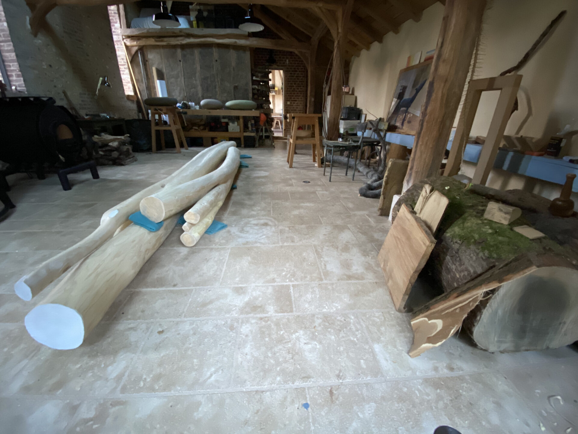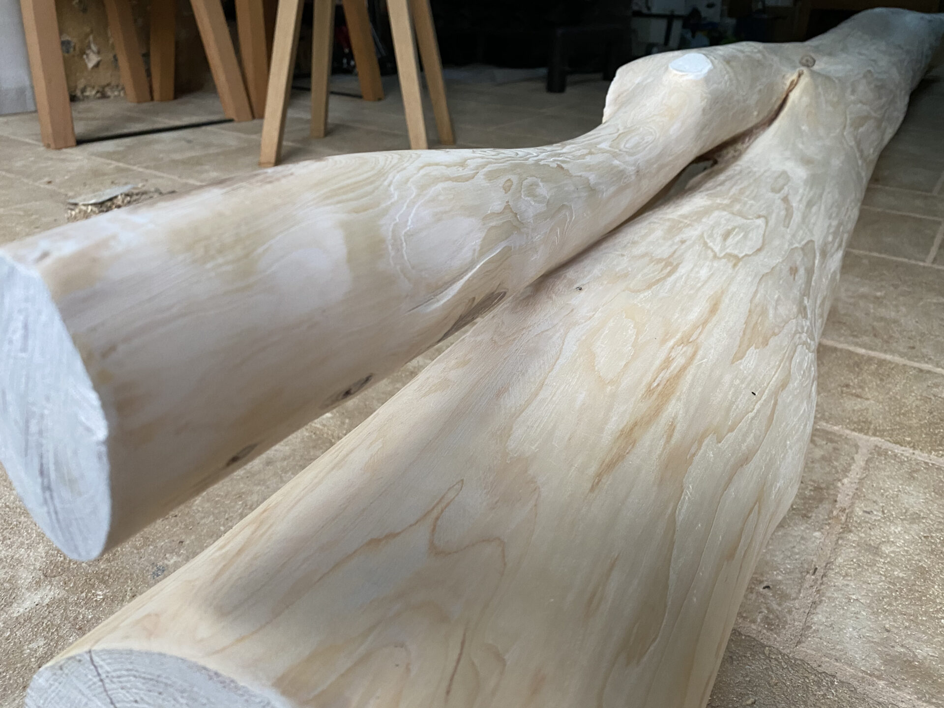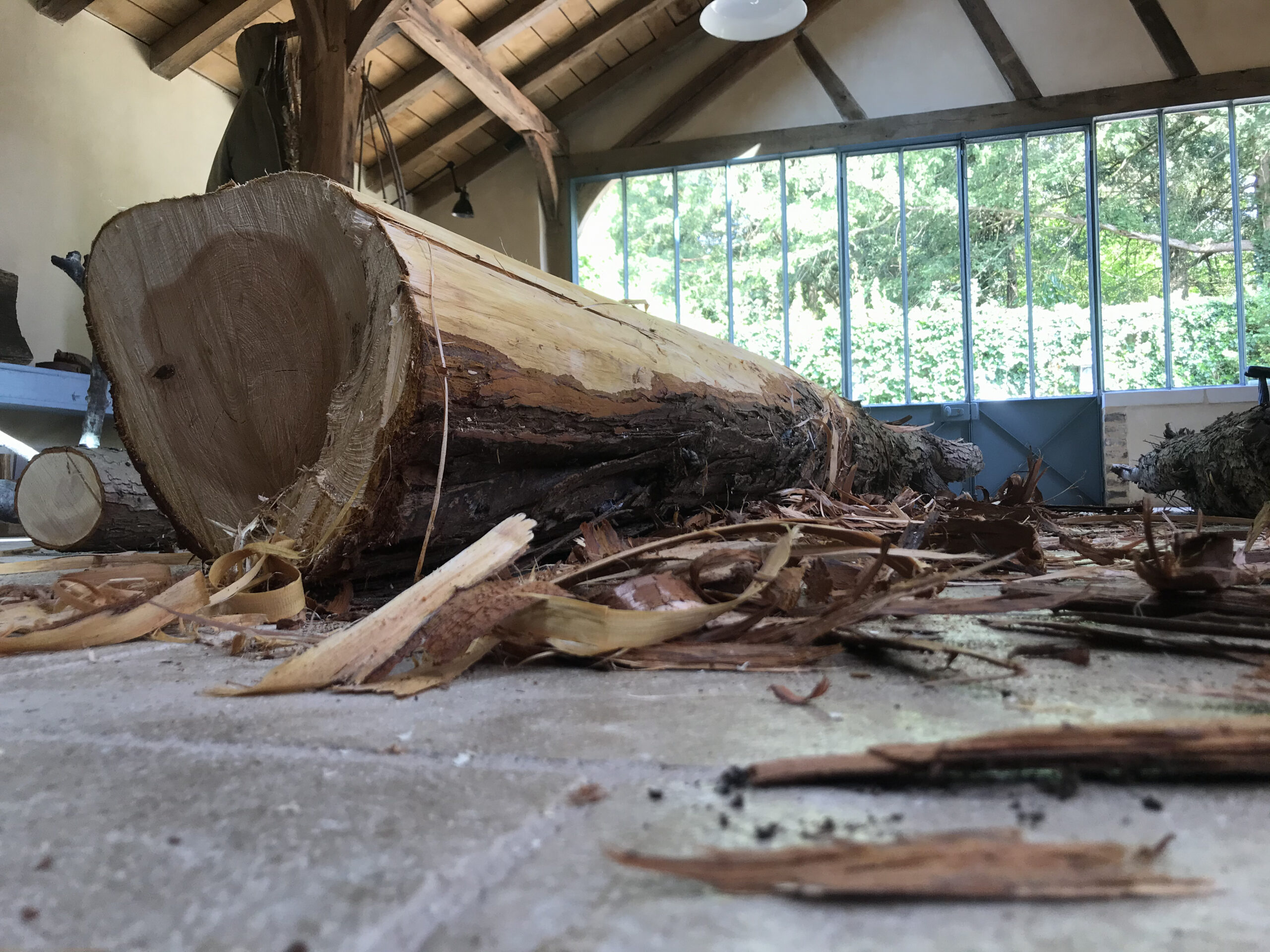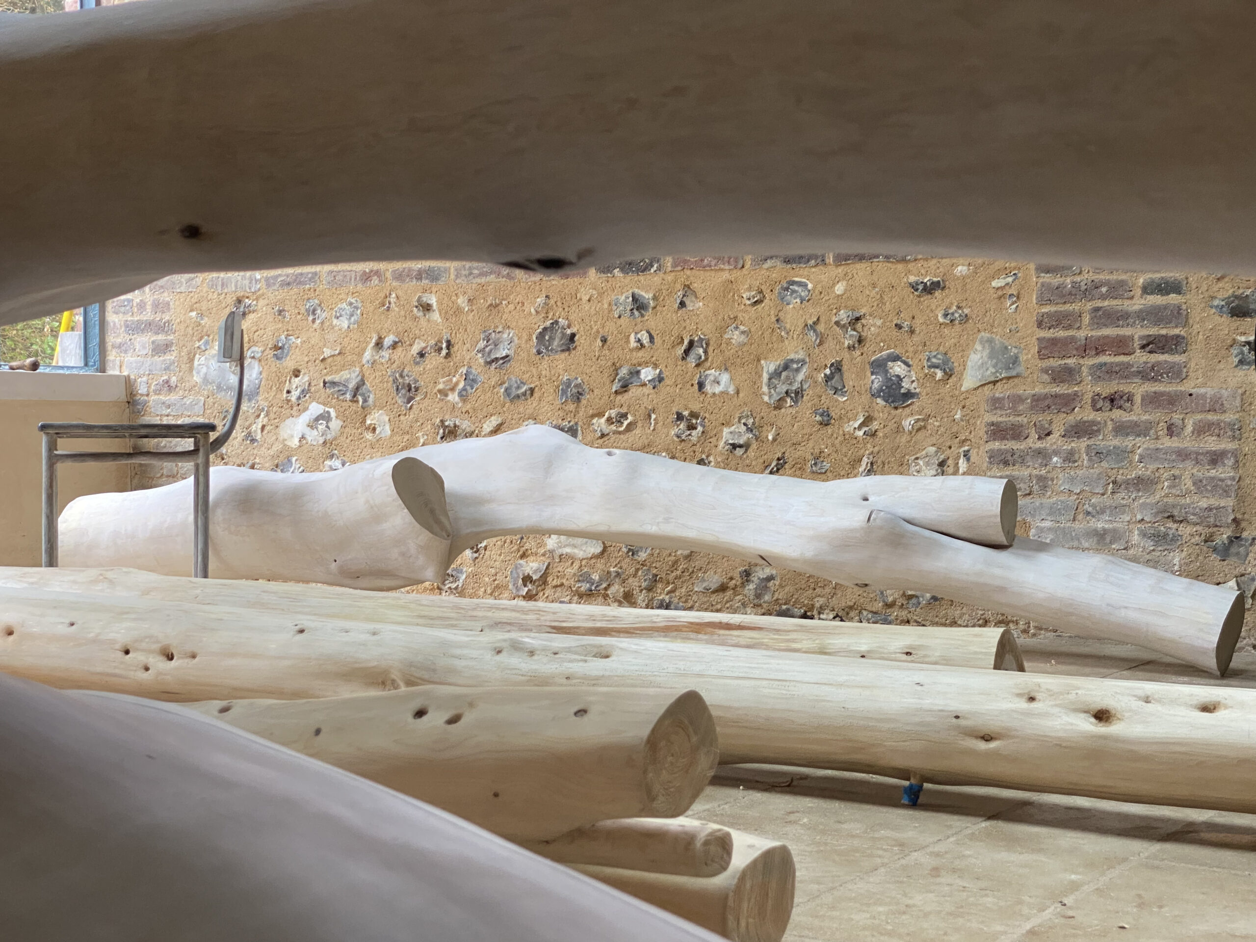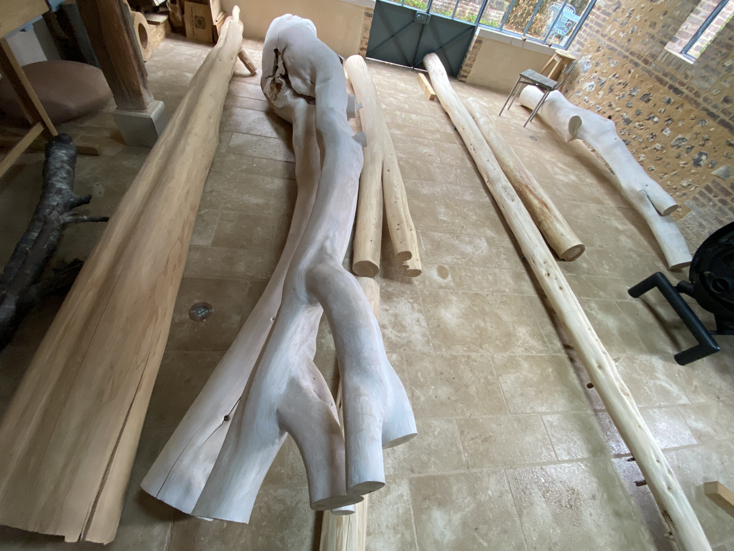 Dem Holzbildhauer Ernst Stark ist ein Baum vor das Atelier gefallen. In dem unmittelbar an sein Atelier in der Normandie angrenzenden Wald liegt der Fundort der Baumstämme. Dort gewachsen und nach dem Sturz in einer eigenwilligen Anordnung verbleibend, gehört der Baum zur Familie der Zypressengewächse (Cupressaceae), die bereits vor mehreren Hundert Millionen Jahren auf der Erde wuchsen.